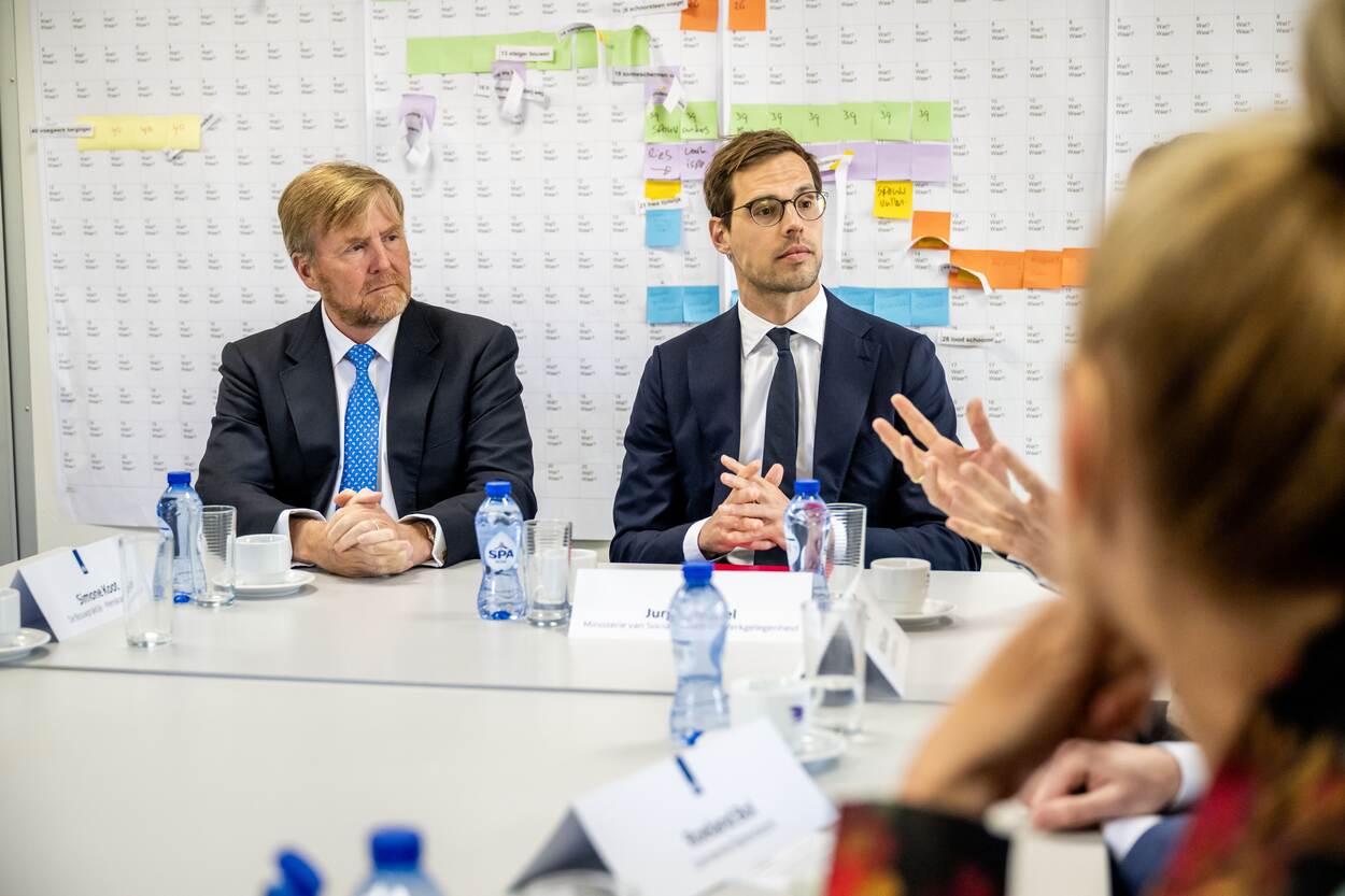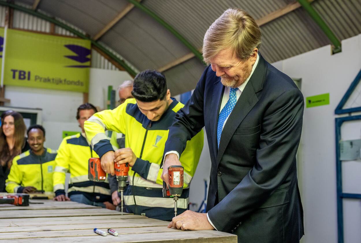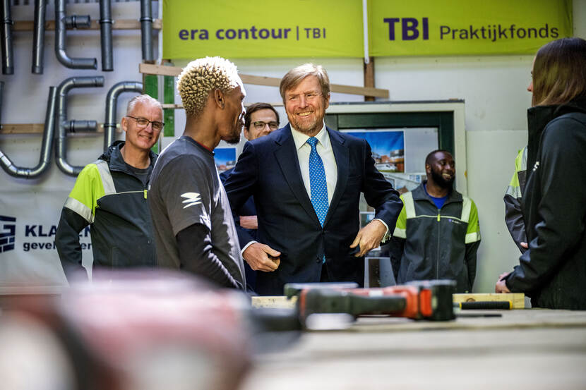 Koning Willem-Alexander brengt samen met staatssecretaris van Participatie en Integratie, Jurgen Nobel, een bezoek aan het project ‘De Bouwpraktijk’. De Bouwpraktijk is een leerwerktraject waarbij statushouders en mensen die lange tijd in de bijstand zitten een kans krijgen op een vaste baan in de bouw.