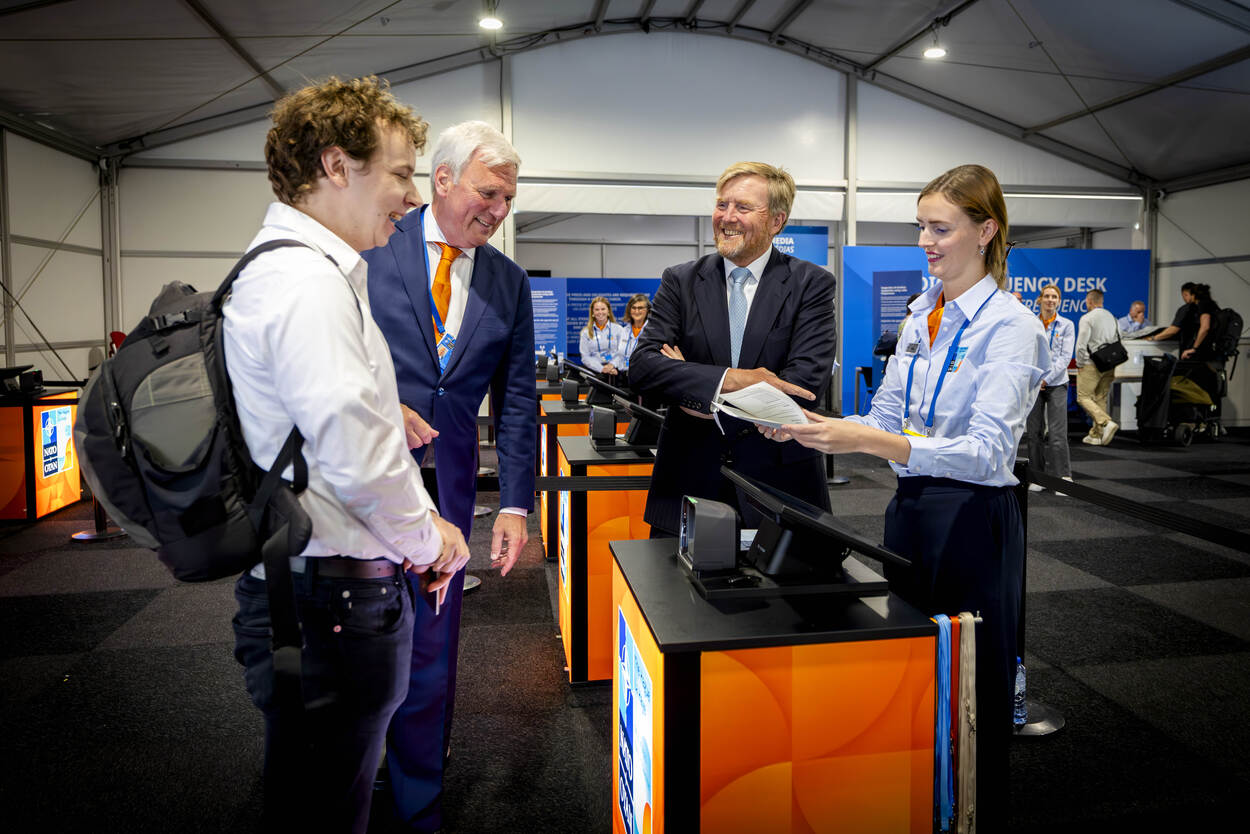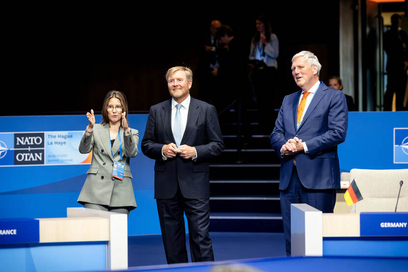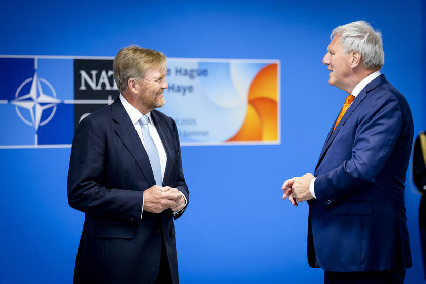 Koning Willem-Alexander brengt een bezoek aan de Taskforce NAVO-top 2025. De Taskforce, die is opgericht bij het ministerie van Buitenlandse Zaken, is samen met de NAVO verantwoordelijk voor de organisatie van de NAVO-top 2025.