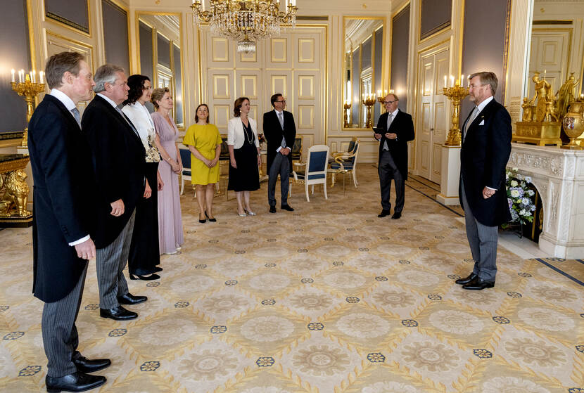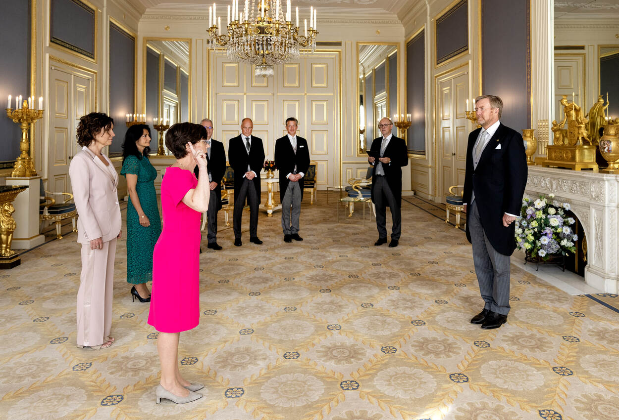 Koning Willem-Alexander ontvangt achtereenvolgens de ambassadeurs Zijne Excellentie drs. M.A. Stibbe (Rome), Zijne Excellentie drs. A.P. den Hartog (Sofia), Zijne Excellentie drs. S.C.W. Ramsoekh (Koeweit), Hare Excellentie drs. M. Noor (Praag), Hare Excellentie drs. M.C.W. Peters (Muscat), Hare Excellentie drs. M.J.J. Crompvoets (Dar es Salaam), Zijne Excellentie mr. drs. C.J.M. Peersman (Riga), Zijne Excellentie drs. J.F.G. van Bommel (Dhaka), Hare Excellentie J.C. Vrijland MA (Ljubljana), Hare Excellentie mr. drs. M. de Jong (Bakoe), Hare Excellentie mr. M.M.A.H. de Ruijter LL.M (Wenen), Zijne Excellentie drs. R.J. Siegert (Islamabad) en Zijne Excellentie dr. A.D. Uilenreef (Tripoli). De ambassadeurs worden ten overstaan van de Koning beëdigd.