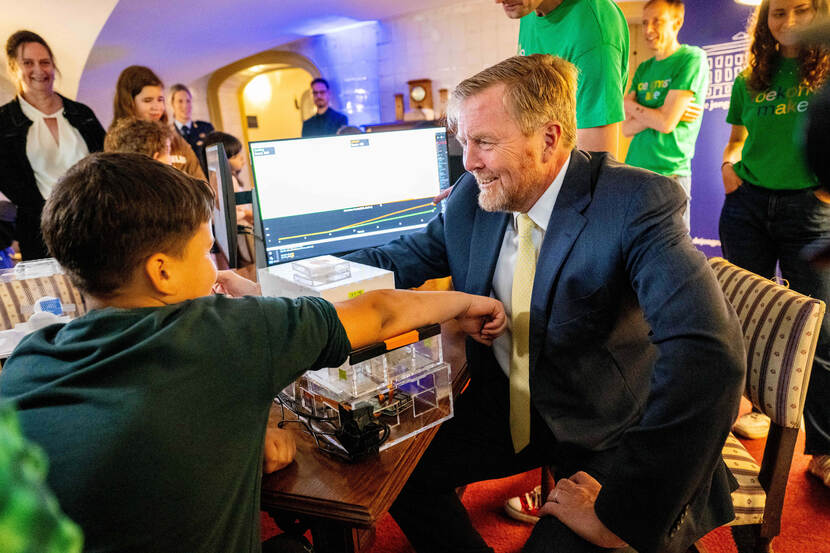 Koning Willem-Alexander is aanwezig bij het wetenschapsevenement ‘Toekomstmakers’. Ter gelegenheid van het twintigjarig bestaan van De Jonge Akademie kunnen kinderen in het Trippenhuis meedoen aan wetenschappelijke experimenten, proefjes uitproberen en deelnemen aan verschillende workshops.