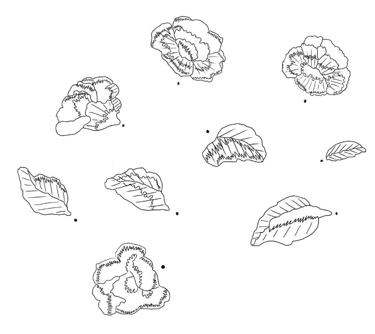 - Teken de patronen van de bloemen en de blaadjes over op de stof waarop u gaat borduren.