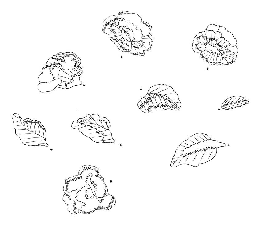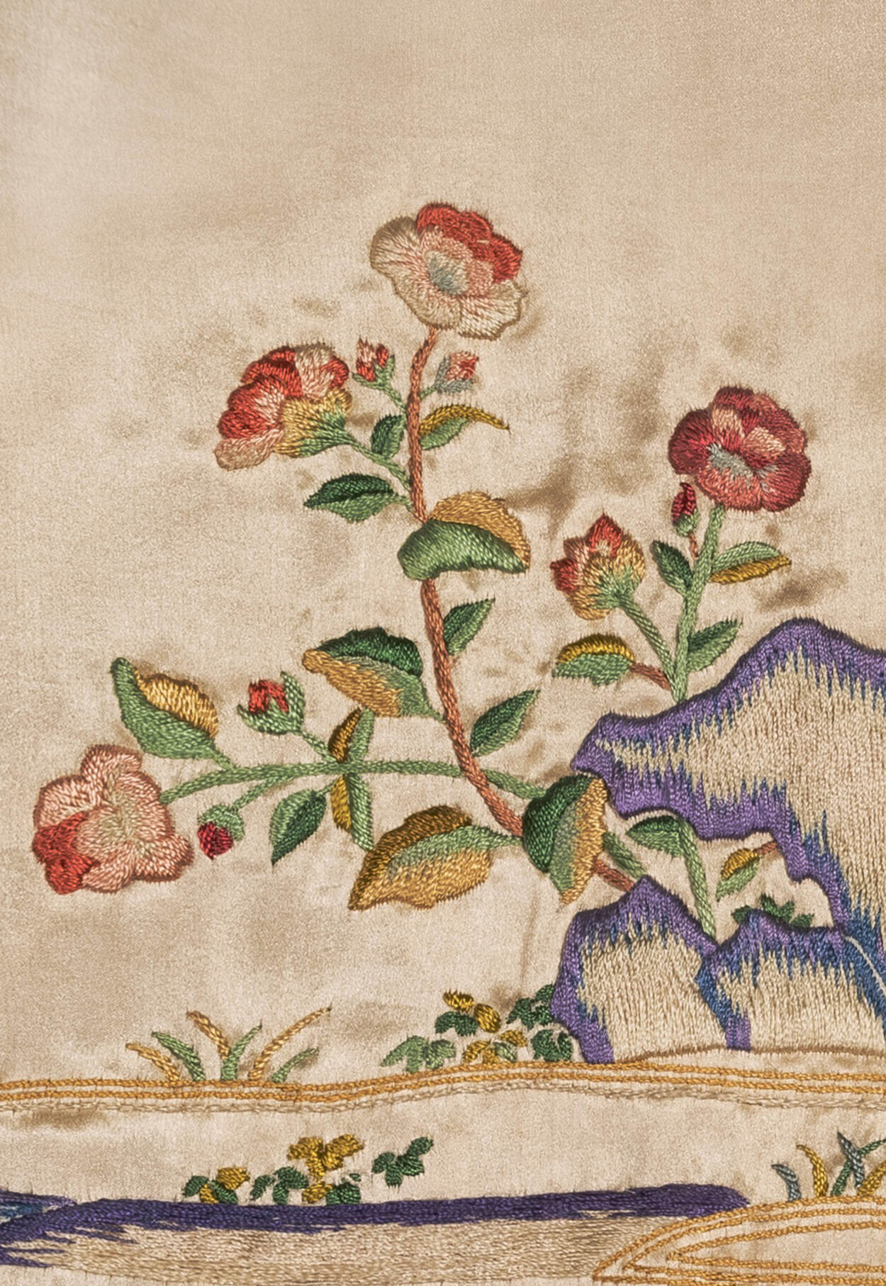 Borduurpatroon van de bloemen van de nieuwe gordijnen voor de Chinese Zaal van Paleis Huis ten Bosch.