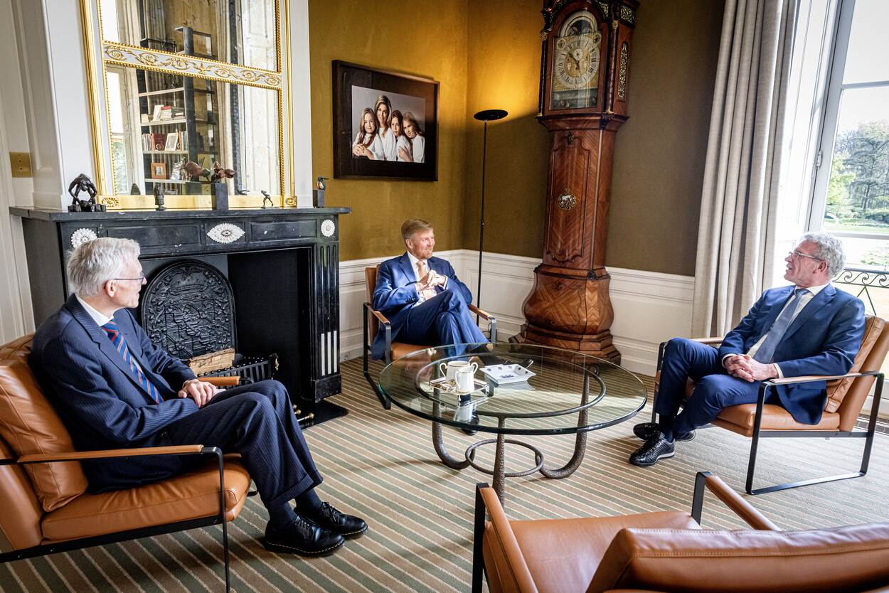 Koning Willem-Alexander ontvangt informateurs prof. dr. E. Dijkgraaf en drs. R. van Zwol. Zij informeren de Koning over de voortgang van de gesprekken met betrekking tot de kabinetsinformatie.