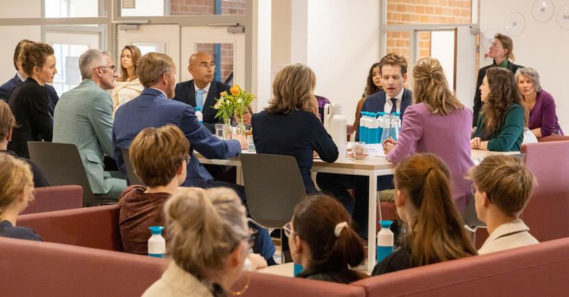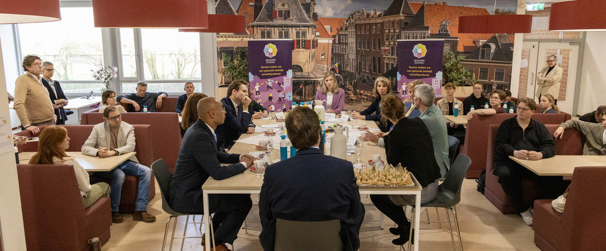 Leerlingen, docenten en Gezonde School-adviseurs gaan in gesprek met de Koning over het belang en de voordelen van meer sport en bewegen gedurende de schooldag.