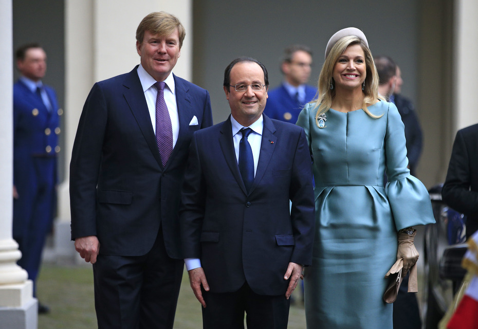 Zijne Majesteit Koning Willem-Alexander ontvangt president Hollande maandagochtend op Paleis Noordeinde met een welkomstceremonie, waarna een audiëntie plaatsvindt. Aansluitend staat een ontmoeting in de Eerste Kamer op het programma met de voorzitters van de Eerste en Tweede Kamer, Ankie Broekers-Knol en Anouchka van Miltenburg. Aan het einde van de ochtend wordt president Hollande ontvangen door minister-president Rutte voor een werkoverleg op het ministerie van Algemene Zaken. Hierbij zijn ook enkele Nederlandse en Franse ministers aanwezig.