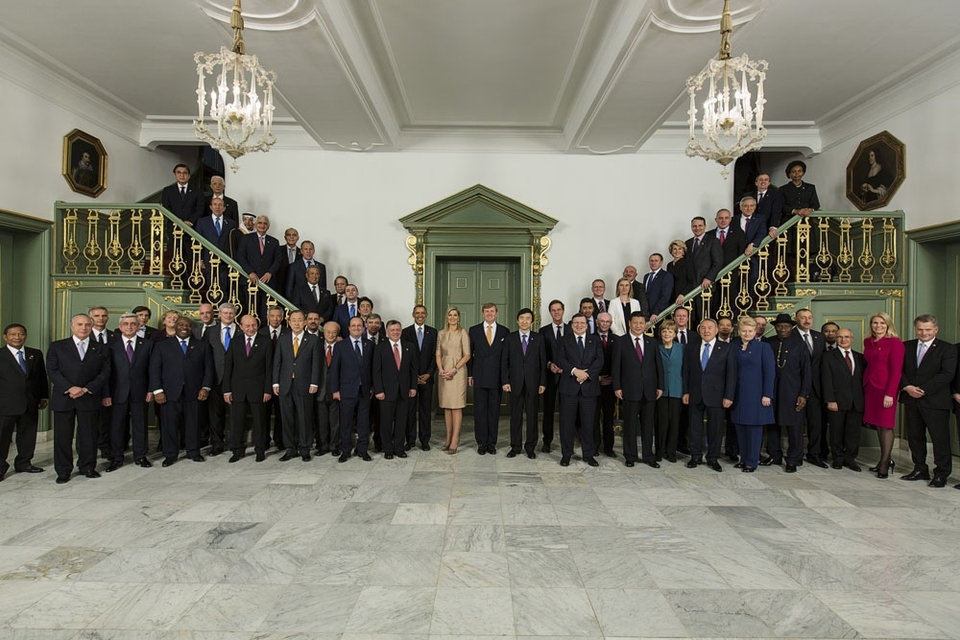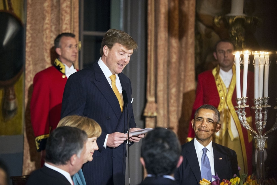 RVD, nr. 50: Zijne Majesteit de Koning ontvangt op maandag 24 maart 2014 de delegatieleiders van de Nuclear Security Summit (NSS) voor een diner op Paleis Huis ten Bosch in Den Haag.