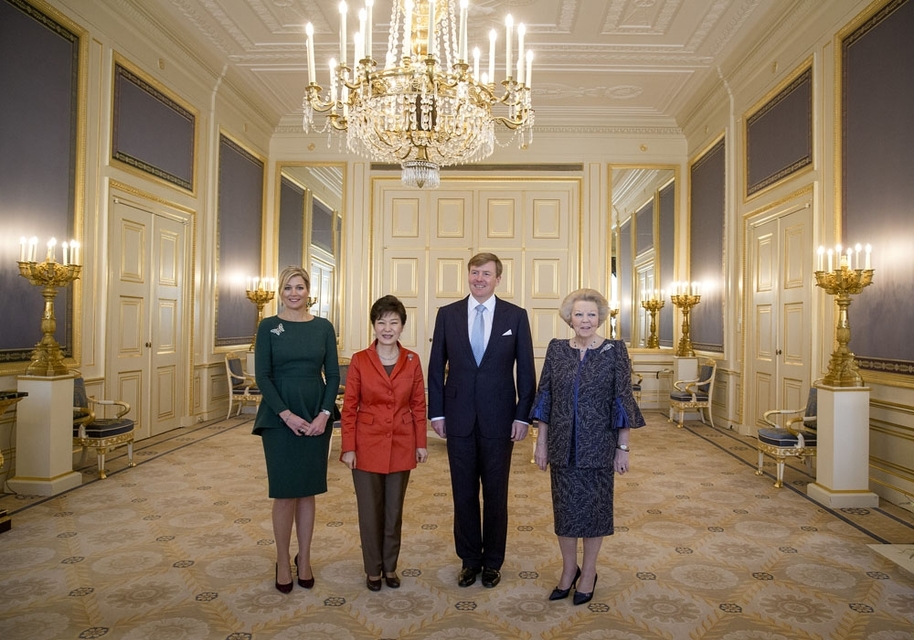 Zijne Majesteit Koning Willem-Alexander biedt op maandag 24 maart president Park Geun-hye van de Republiek Zuid-Korea, een lunch aan op Paleis Noordeinde. Hare Majesteit Koningin Máxima en Hare Koninklijke Hoogheid Prinses Beatrix zijn hierbij aanwezig.