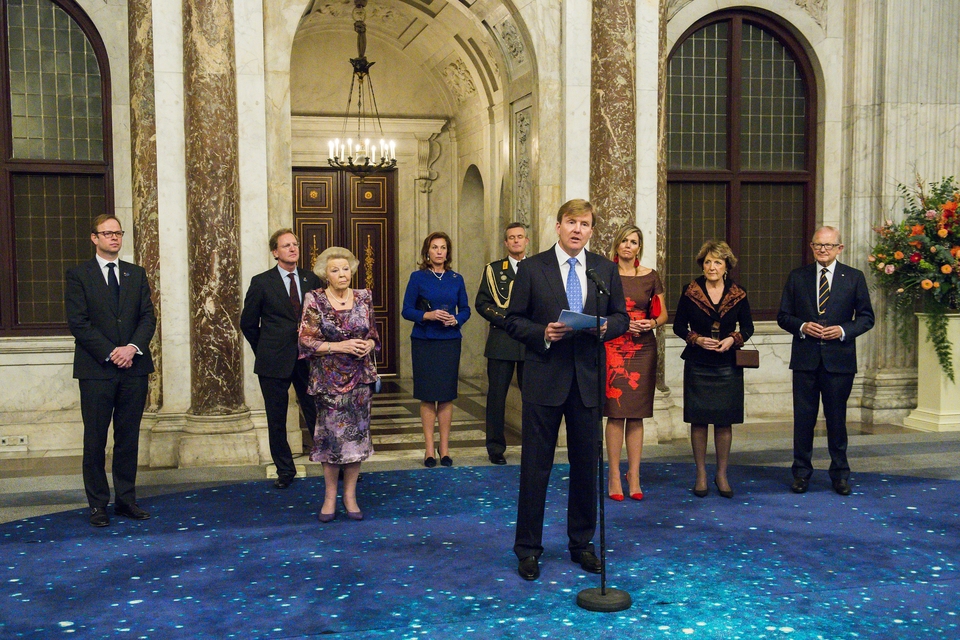 Vergroot afbeelding Amsterdam, 13 januari 2015: Koning Willem-Alexander houdt een toespraak tijdens de traditionele Nieuwjaarsontvangst voor Nederlandse genodigden in het Koninklijk Paleis Amsterdam
