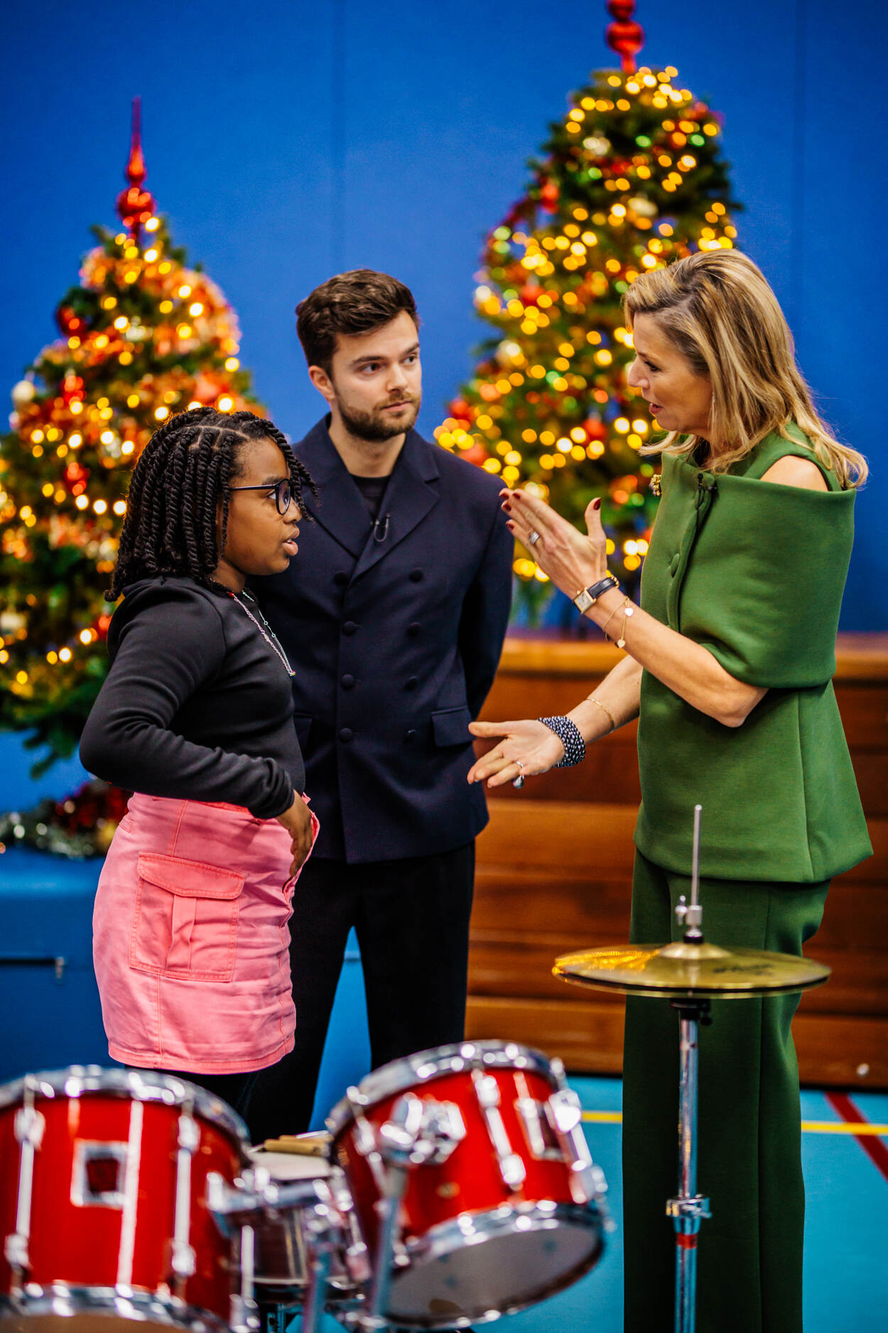 Koningin Máxima brengt als erevoorzitter van Méér Muziek in de Klas een bezoek aan basisschool Mobiel in Amsterdam. Basisschool Mobiel is een van de twaalf basisscholen die meedoet aan de grootste schoolband van Nederland. De schoolband treedt op tijdens het jaarlijkse Kerst Muziekgala, dat aandacht vraagt voor het belang van muziek- en creatief onderwijs.