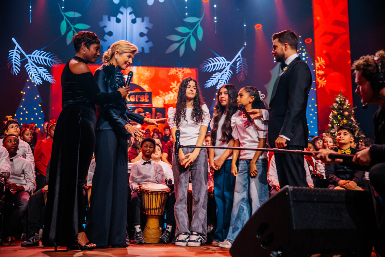 Koningin Máxima is bij de opnames van het Kerst Muziekgala 2025, dat wordt uitgezonden op maandag 23 december om 20.35 uur bij AVROTROS op NPO 1. Kinderen vanuit het hele land laten hun talenten zien op het gebied van dans, muziek, beeldende kunst en mode. Ook treedt de Grootste Schoolband van Nederland op. Koningin Máxima is erevoorzittter van stichting Méér Muziek in de Klas.