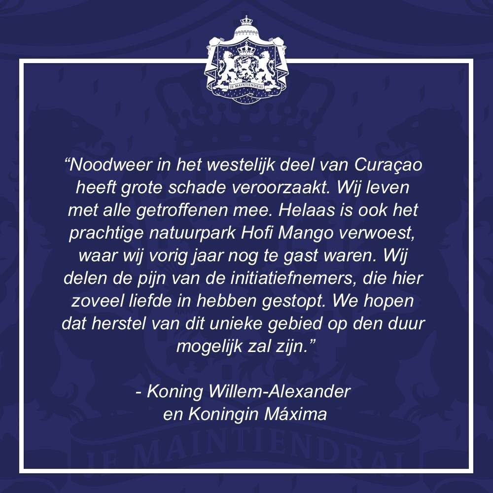 Reactie van Koning Willem-Alexander en Koningin Máxima naar aanleiding van het noodweer in het westelijk deel van Curaçao