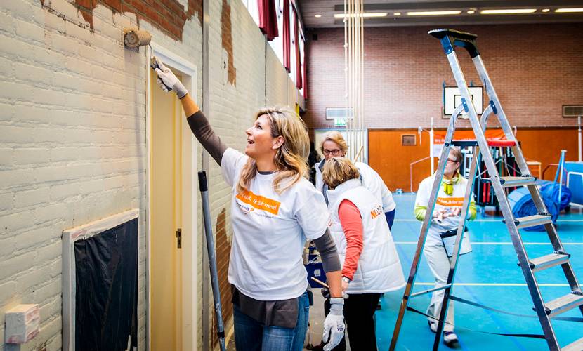 Koning Willem-Alexander en Koningin Máxima deden vanmorgen verschillende klussen bij het dorpshuis in Tricht. Samen met de andere vrijwilligers hielpen zij onder andere met het herinrichten en opknappen van de sportzaal en het schoonmaken van de buitenruimte. Het dorpshuis heeft een centrale functie in Tricht en biedt onderdak aan uiteenlopende clubs en verenigingen, die er hun activiteiten, vergaderingen en bijeenkomsten kunnen houden.