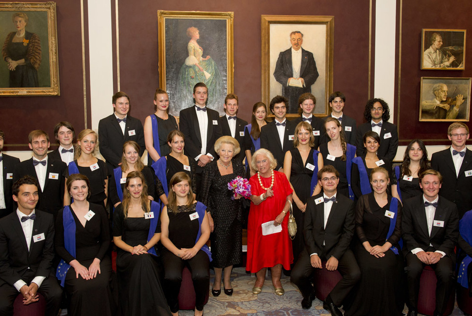 RVD, nr. 190: Hare Koninklijke Hoogheid Prinses Beatrix der Nederlanden is woensdagavond 28 augustus aanwezig bij een concert van het European Union Youth Orchestra in Het Koninklijk Concertgebouw in Amsterdam.