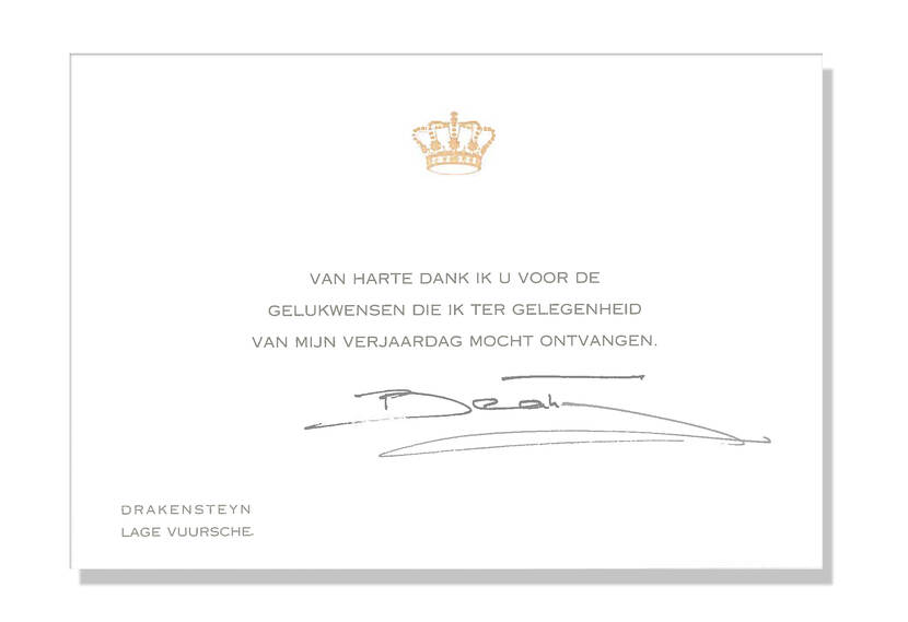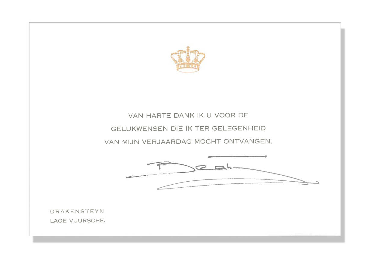 Bedankkaart van Prinses Beatrix ter gelegenheid van de gelukwensen voor haar 81ste verjaardag.