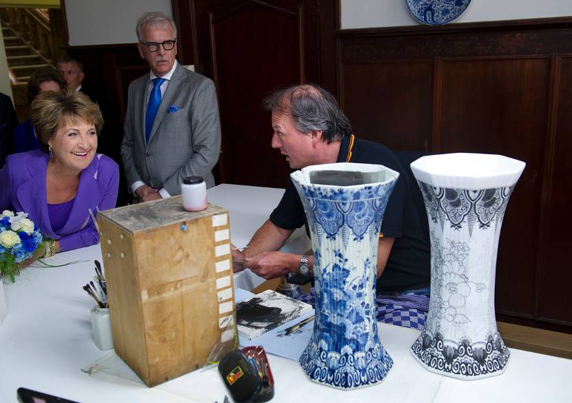 RVD, nr. 128: Hare Koninklijke Hoogheid Prinses Margriet der Nederlanden opent donderdagmiddag 31 mei de Royal Delft Experience, onderdeel van de aardewerkfabriek Koninklijke Porceleyne Fles in Delft.