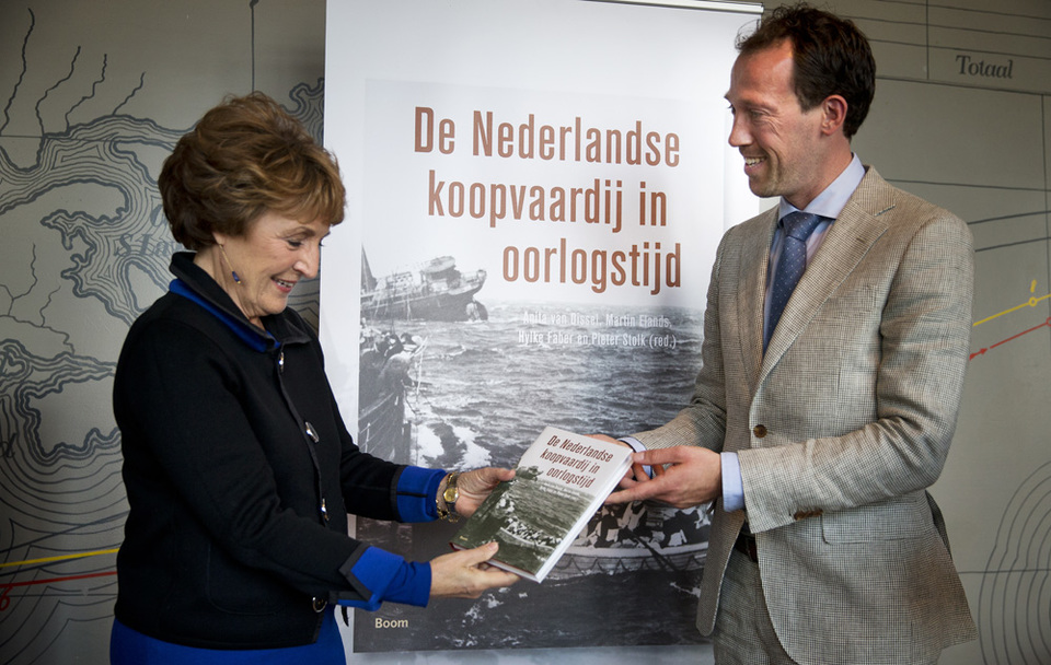 Prinses Margriet ontvangt boek over rol Nederlandse koopvaardij in de Tweede Wereldoorlog