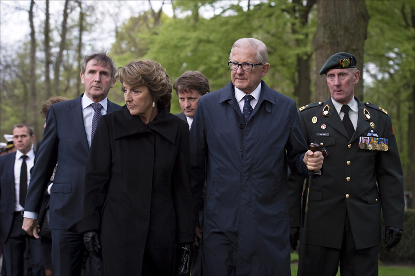 Prinses Margriet, prof.mr. Pieter van Vollenhoven en Prins Pieter-Christiaan bij herdenking Rhenen