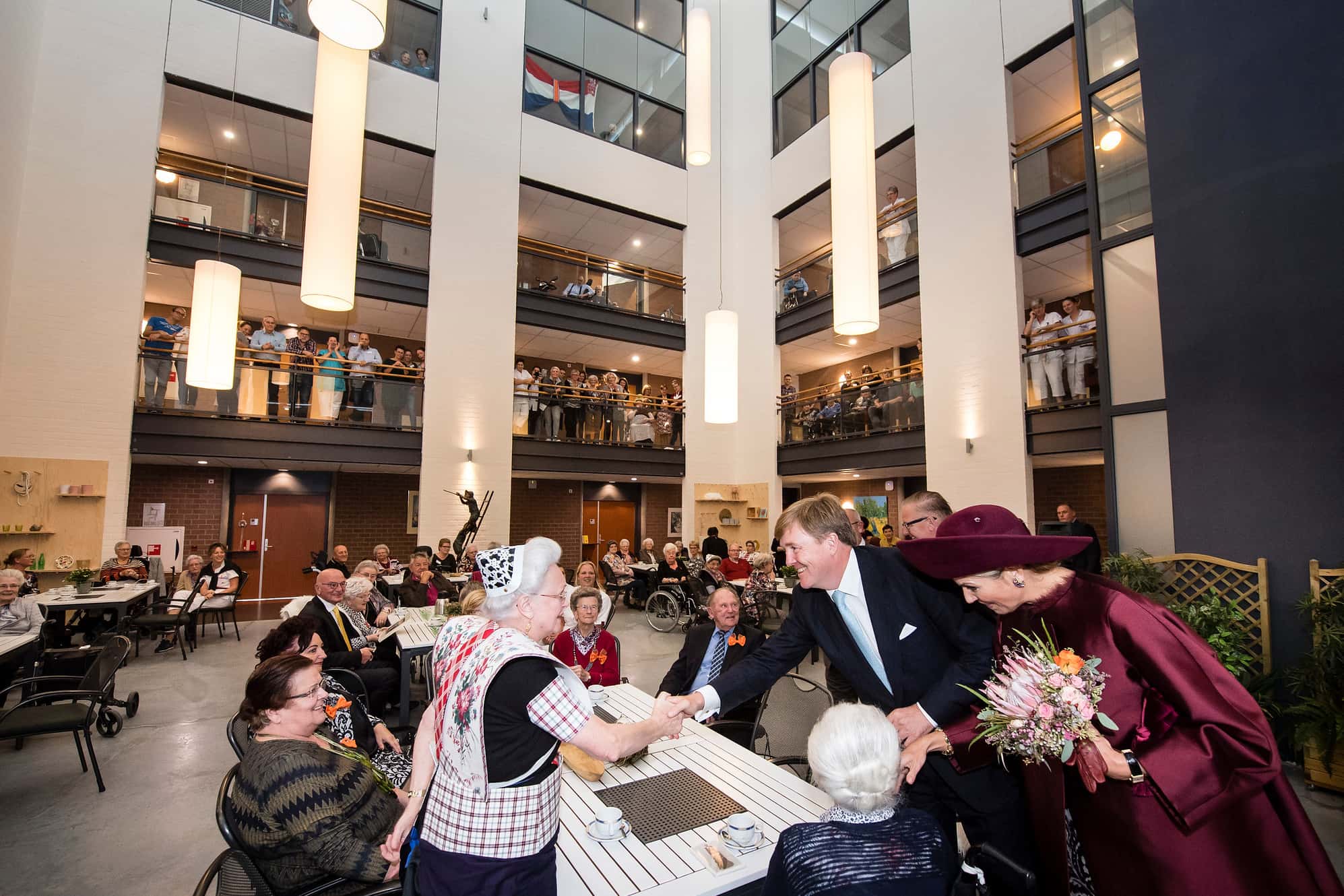 In Zorg- en Wooncentrum De Haven in Spakenburg ontmoetten de Koning en Koningin medewerkers en vrijwilligers van in het centrum bijeengebrachte organisaties en faciliteiten.