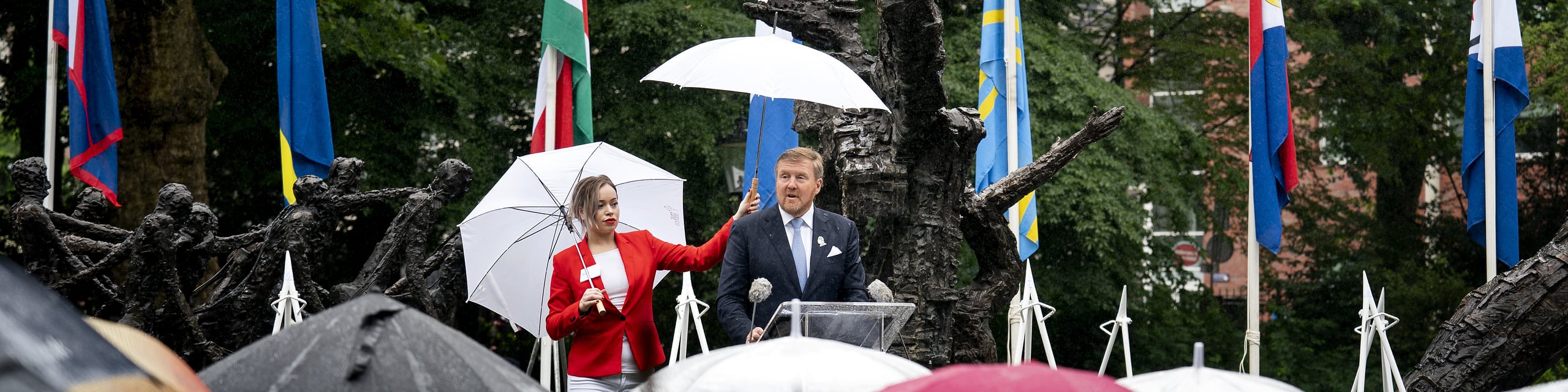 Op 1 juli 2023 spreekt de Koning bij de Nationale Herdenking Slavernijverleden in het Oosterpark in Amsterdam. Ter gelegenheid van het bijzondere herdenkingsjaar leggen de Koning en Koningin Máxima een krans.