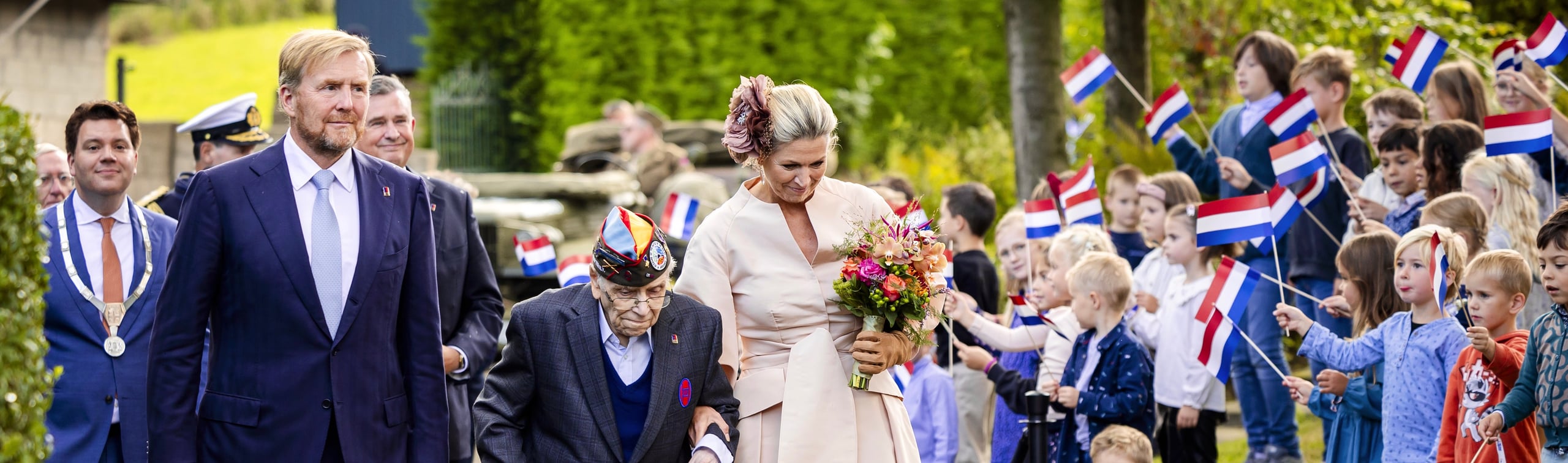 Het Koninklijk Paar woont de start van het jubileumjaar bij in Mesch, dat als eerste dorp in Nederland werd bevrijd door de geallieerden.