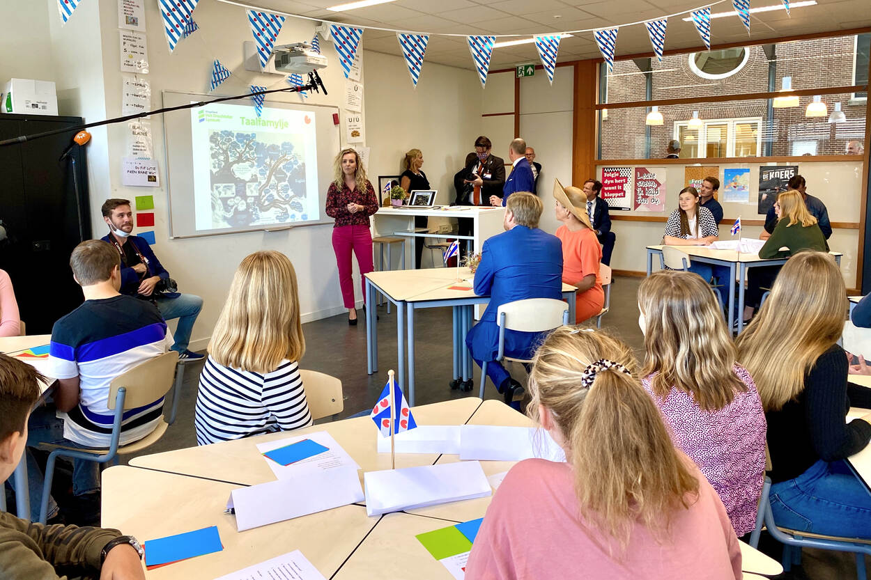 Fries (Frysk) is een officiële taal. Het is een verplicht vak in het basisonderwijs en een keuzevak in het middelbaaronderwijs in de provincie Fryslân. Koning Willem-Alexander en Koningin Máxima zijn bij een deel van een les Frysk van havo/vwo-4-leerlingen van OSG Singelland in Drachten.