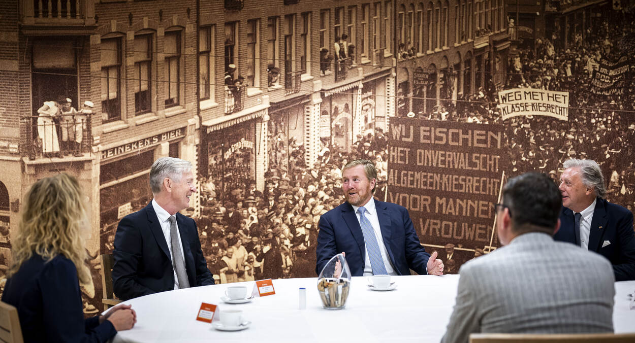 Koning Willem-Alexander brengt een werkbezoek aan ProDemos ter gelegenheid van het 12,5-jarig jubileum van dit ‘Huis voor Democratie en Rechtsstaat’.