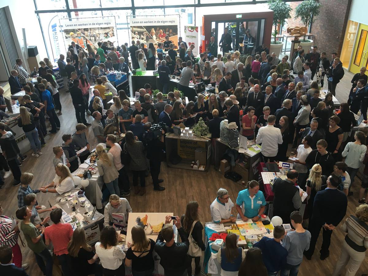 Koning Willem-Alexander en Koningin Máxima begonnen hun bezoek bij Campus Middelsee in Sint Annaparochie. Scholen en bedrijven uit vier gemeenten werken daar, door middel van het Leerwerkplein van de campus, intensief samen om leerlingen uit het voortgezet onderwijs te verbinden met de regionale arbeidsmarkt. De Koning en Koningin spraken met betrokkenen over de betekenis van dit Leerwerkplein voor de leefbaarheid en bedrijvigheid in de regio en bezochten het ‘Ondernemersplein’ waar scholieren en potentiële toekomstige werkgevers elkaar ontmoeten.