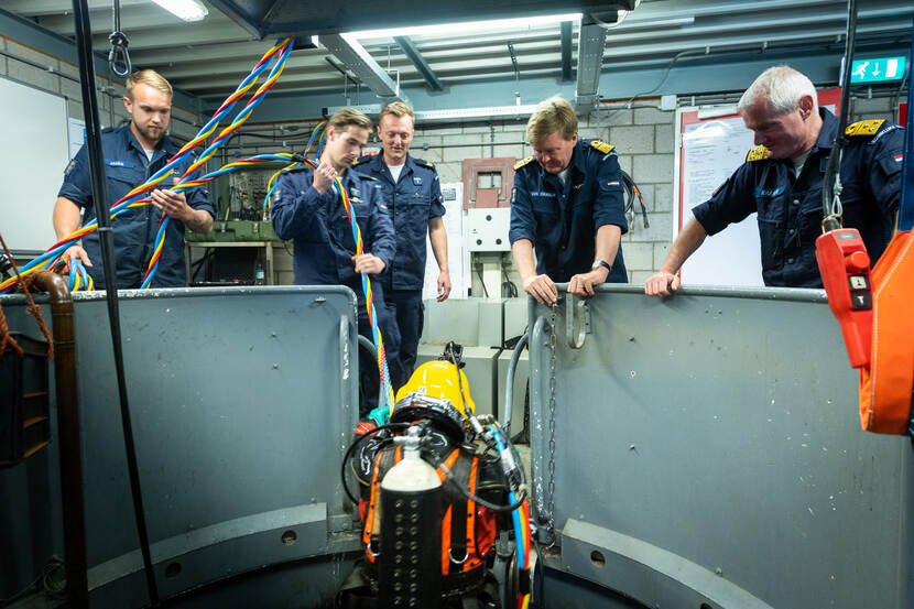 Koning brengt werkbezoek aan de Mijnendienst en Duikgroep van de Koninklijke Marine
