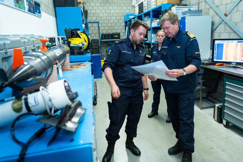 De Koning kreeg bij de Mijnendienst een presentatie over de Nederlandse en Europese strategische belangen van een vrije doorgang op zee. Vervolgens sprak de Koning met deskundigen over mijnendreiging en hoe de marine deze nu en in de toekomst aanpakt.