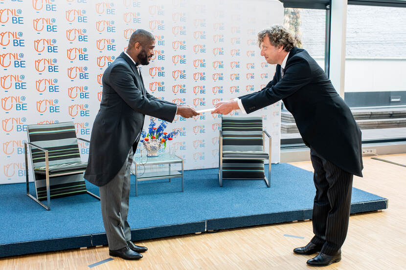 12 mei Geloofsbrieven ambassadeurs Mauritius, Haïti, Lesotho en Singapore via videogesprekken