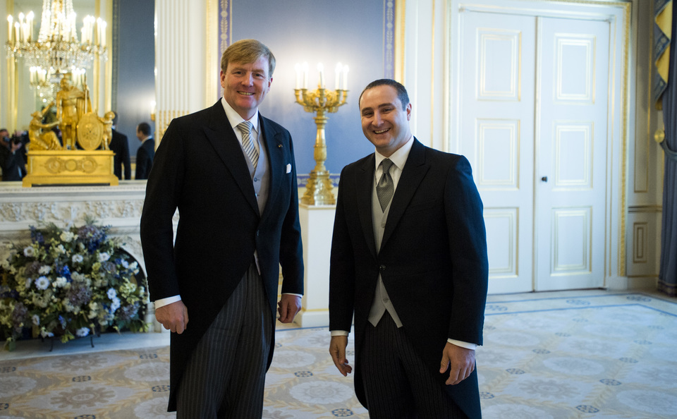 Zijne Majesteit de Koning zal woensdagochtend 15 oktober 2014 op Paleis Noordeinde in Den Haag ter overhandiging van hun geloofsbrieven achtereenvolgens ontvangen de ambassadeur van de Republiek Zuid-Afrika, Z.E. Vusi Bruce Koloane, de ambassadeur van Hongarije, H.E. mevrouw Orsolya Szijjártó, en de ambassadeur van Georgië, Z.E. Konstantine Surguladze.