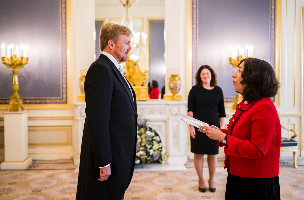 De Koning ontvangt de geloofsbrieven van de ambassadeur van Canada, H.E. Lisa Helfand.