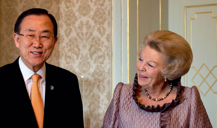 Hare Majesteit de Koningin ontving op 7 april de Secretaris-Generaal van de Verenigde Naties, de heer Ban Ki-moon. Hij was in Nederland voor een conferentie van de Organisation for the Prohibition of Chemical Weapons (OPCW) in Den Haag. Deze internationale organisatie richt zich op een verbod op chemische wapens en de vernietiging van bestaande voorraden, zodat deze nooit meer kunnen worden gebruikt. Bijna alle landen in de wereld zijn in de OPCW vertegenwoordigd. De OPCW speelt onder meer een belangrijke rol bij de ontmanteling van het Syrische arsenaal aan chemische wapens. Op 10 december 2013 ontving de OPCW de Nobelprijs voor de Vrede.