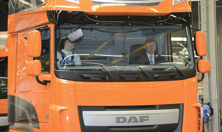 De Prins van Oranje gaf 3 april het startsein voor de officiële productie van de nieuwe DAF XF, ontwikkeld voor de Euro 6-emissie-eisen. DAF investeerde een miljard euro in een compleet nieuwe voertuigserie en in aanpassingen van haar fabrieken in Eindhoven en Westerlo om de productie van de nieuwe generatie trucks mogelijk te maken. De Prins reed zelf de eerste nieuwe (oranjegekleurde) DAF van de productieband. DAF-medewerker Tom Pinxten assisteerde hem daarbij: “Ik heb hem gezegd waar de versnellingspook zat en de handrem, maar hij wist alles goed te vinden”.