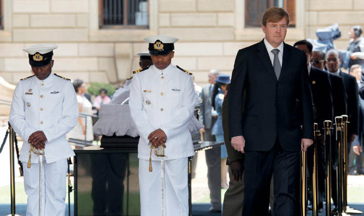 Zijne Majesteit Koning Willem-Alexander was op 10 december in het stadion van Johannesburg aanwezig bij de herdenkingsceremonie voor Nelson Mandela, die 5 december op 95-jarige leeftijd overleed. De dag erna bewees de Koning Mandela de laatste eer bij de baar in het Uniegebouw in Pretoria. In dit gebouw werd Nelson Mandela in 1994 beëdigd als eerste zwarte President van Zuid-Afrika. “Met zijn wijsheid, integriteit en vriendelijkheid gaf hij een inspirerend voorbeeld”, aldus de Koning.