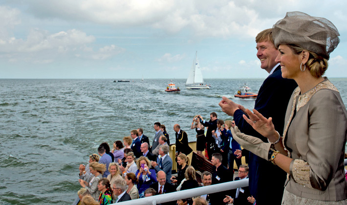 Met de MS Friesland werd de overtocht gemaakt van Stavoren naar Enkhuizen. Aan boord spraken de Koning en Koningin met ongeveer honderd inwoners van beide provincies. Onder hen Henk de Jong, trainer van SC Cambuur: “Wij hebben iets gepresteerd met Cambuur Leeuwarden: we zijn gepromoveerd naar de eredivisie. Dat heeft heel veel mensen in Friesland blij en trots gemaakt. De Koning wist ervan en dat had ik ook wel verwacht.” De Commissaris van de Koning in Noord-Holland, de heer J.W. Remkes, was ook aan boord. In zijn provincie kregen naast Enkhuizen ook Hoorn, Zaandam en Haarlem Koninklijk bezoek. In Zaandam wandelde het Paar over het Hembrugterrein, tussen het Noordzeekanaal en de Zaan. Het terrein telt 125 industriële, deels monumentale gebouwen. De Koning en Koningin maakten kennis met de nieuwe bestemmingen van dit erfgoed, onder meer voor de creatieve industrie.