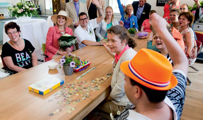 Initiatiefnemer van de Thomashuizen is Hans van Putten. Na lang en tevergeefs op zoek te zijn geweest naar een goede, menswaardige woonomgeving voor zijn verstandelijk beperkte zoon Thomas, besloot hij in 2001 zelf die plek te creëren. In 2003 opende het eerste Thomashuis zijn deuren. De vraag bleek groot en binnen tien jaar zijn honderd Thomashuizen gerealiseerd. Ter ere van het jubileum werd in Houten het honderdste Thomashuis officieel geopend. Koningin Máxima woonde het jubileum bij en sprak vervolgens met de bewoners van het nieuwe Thomashuis. “Ze was erg goed geïnformeerd”, zegt zorgouder Marja van Rooijen. “Het was heel informeel. Ze mocht op Patricia’s stoel zitten en aansluitend heeft bewoner Jos nog een dansje met haar gedaan.” -