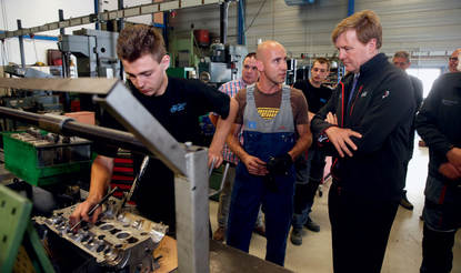 Zijne Majesteit Koning Willem-Alexander ging 11 juni op bezoek bij Motorcycle Support Nederland in Goirle. Motorcycle Support Nederland begeleidt mensen met een lichte beperking die moeilijk aan de slag kunnen komen. De organisatie biedt dagbestedingsplaatsen aan, verzorgt opleidingen op maat en geeft persoonlijke begeleiding. De deelnemers doen werkervaring op in de motor- en autowerkplaats of krijgen de mogelijkheid stage te lopen of aan de slag te gaan bij bedrijven in de regio. De Koning liet zich informeren over de werkwijze en toekomstplannen van Motorcycle Support. Aansluitend werd hij rondgeleid door de werkplaats en sprak hij met jongeren over hun ervaringen. Het bezoek van de Koning viel bij hen in goede aarde. Werknemer Randy was kort maar duidelijk: “ja, goede gast”.