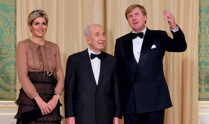 De President van Israël, Shimon Peres, bracht begin oktober 2013 een officieel bezoek aan Nederland. Op 1 oktober verwelkomde Zijne Majesteit Koning Willem-Alexander hem op Paleis Noordeinde. ‘s Avonds boden de Koning en Koningin de President een diner aan. De Koning prees de President om zijn rol in het vredesproces in het Midden-Oosten, zijn plichtsbetrachting en zijn toekomstgerichtheid. “Mijnheer de President, ondanks het feit dat u onlangs uw negentigste verjaardag vierde, staat u erom bekend zeer jong van geest te zijn en de moderne media niet te schuwen in uw streven verbindingen te leggen. Uw timeline op Facebook en Twitter is bijna net zo lang en rijk gevuld als die van uw echte leven.”