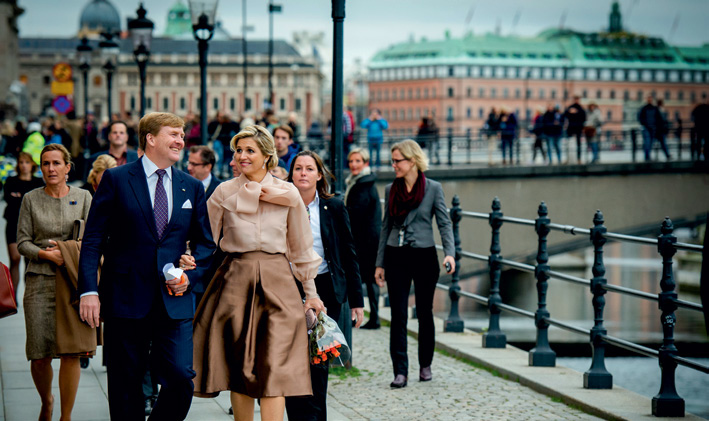 Zijne Majesteit Koning Willem-Alexander en Hare Majesteit Koningin Máxima brachten 14 oktober een kennismakingsbezoek aan Zweden. Zij werden vergezeld door minister Timmermans van Buitenlandse Zaken. De diplomatieke banden tussen Zweden en Nederland zijn sterk: in 1614 opende Zweden zijn eerste ambassade ter wereld in Den Haag. In Stockholm werden de Koning en Koningin op het Koninklijk Paleis ontvangen door Koning Carl Gustaf, Koningin Silvia, Kroonprinses Victoria en Prins Daniel. Vervolgens bezochten de Koning en Koningin het Zweedse parlement, de Riksdag. Zij ontmoetten daar Voorzitter Per Westerberg en Secretaris-Generaal Kathrin Flossing. Tot slot hadden zij een ontmoeting met Minister-president Fredrik Reinfeldt.
