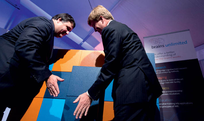 Zijne Majesteit Koning Willem-Alexander opende 29 oktober 2013 het scannerlab Brains Unlimited op de Maastricht Health Campus. Het lab wordt door wetenschappers en bedrijven gebruikt voor onderzoek naar de ontwikkeling van menselijk gedrag en naar veel voorkomende ziekten als Alzheimer, Parkinson, epilepsie, schizofrenie en MS. Brains Unlimited beschikt over drie MRI-scanners. De grootste, waarvan er slechts vijf in de wereld zijn, heeft een ultrahoog magneetveld van 9.4 tesla. Hierdoor kan op microscopisch niveau worden waargenomen wat zich in het hoofd afspeelt. De Koning liet zich uitgebreid rondleiden en praatte met de onderzoekers. Rainer Goebel (Professor Cognitieve Neuroscience): “Er zijn maar een paar centra in de wereld die zich kunnen meten met wat we hier in Maastricht kunnen. We kunnen gebieden in het brein verkennen waar voorheen niemand toegang toe had. Daardoor kunnen we ook symptomen van MS, Alzheimer en bepaalde vormen van kanker eerder onderkennen en dus patiënten eerder helpen.”