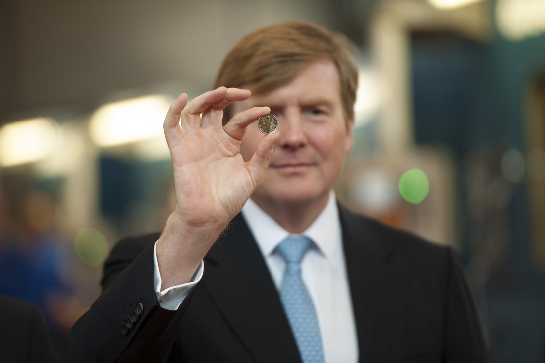 Bij een nieuw staatshoofd, hoort een nieuwe munt. Zijne Majesteit Koning Willem-Alexander startte 22 januari de productie van de nieuwe Nederlandse euromunten met zijn beeltenis. Hij deed dat door de muntpersen in werking te stellen bij de Koninklijke Nederlandse Munt in Utrecht.