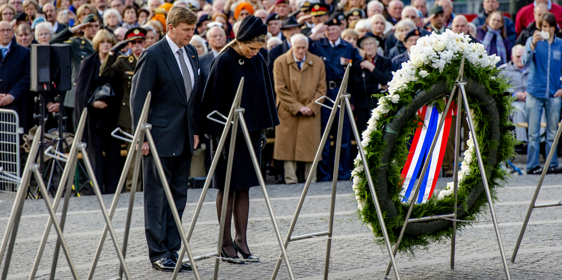 Zijne Majesteit Koning Willem-Alexander en Hare Majesteit Koningin Máxima legden een krans bij het Nationaal Monument op de Dam. Voorafgaand aan de plechtigheid op de Dam sprak schrijver Jan Terlouw tijdens de herdenkingsbijeenkomst in de Nieuwe Kerk. “Toen onze kinderen de leeftijd bereikten die mijn vrouw en ik hadden in de laatste oorlogswinter, en wilden weten hoe het was geweest, heb ik er een boek over geschreven. Ik mag niet klagen over de ontvangst ervan, maar er waren ook nogal wat lezers die zeiden: zo was het niet. Ik heb me toen scherp gerealiseerd dat er zoveel aspecten aan een oorlog zijn. De oorlog op het slagveld. De oorlog in het concentratiekamp. Oorlog in de hongerende stad. Oorlog als dwangarbeid aan een spoorlijn. Oorlog in een achterhuis.(….) De jeugd voelt de enorme invloed die oorlogen hebben gehad op het leven van de mensen uit wie ze is voortgekomen. Jonge mensen willen er steeds over lezen, ze komen naar herdenkingsbijeenkomsten, ze voelen zich deel van een geschiedenis die niet is verbleekt.”