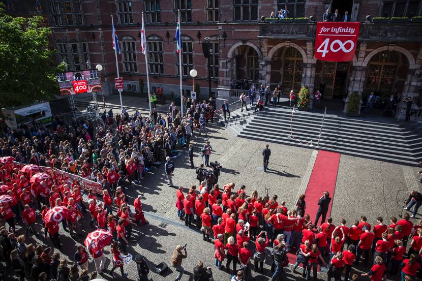 De Rijksuniversiteit Groningen is – na Leiden – de oudste nog bestaande universiteit van ons land. In 2014 vierde de universiteit haar vierhonderdjarig bestaan. De lustrumactiviteiten gingen op 15 mei van start in het Academiegebouw. Zijne Majesteit Koning Willem-Alexander was erbij en gaf het startsein. De Rijksuniversiteit Groningen is sterk betrokken bij de regio en heeft een belangrijke rol als wetenschappelijk instituut en werkgever in het noorden van het land. Onder het motto ‘400 jaar oneindigheid’, presenteerde de universiteit haar toekomstvisie en ambities. Als research-instelling richt de universiteit zich in het bijzonder op drie maatschappelijk relevante thema’s: Energy, Healthy Ageing en Sustainable Society.