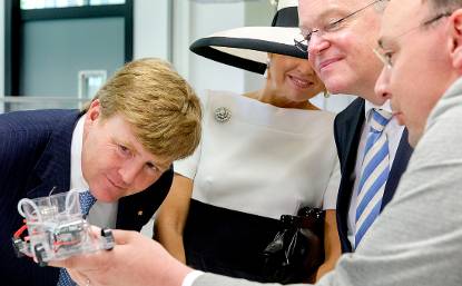 Zijne Majesteit Koning Willem-Alexander en Hare Majesteit Koningin Máxima brachten 26 en 27 mei een bezoek aan de beide Duitse deelstaten. In een vol en gevarieerd programma maakten zij kennis met een groot aantal concrete samenwerkingsrelaties. Zo woonden zij in Oldenburg een seminar bij over duurzame energie. De Koning en Koningin kregen onder meer uitleg over het eerste experimentele batterijwisselstation in Duitsland, waarbij auto’s, wanneer ze niet rijden, gebruikt worden als energieopslagobject. “Deutschland ist mit seiner Energiewende europäischer Schrittmacher”, zei de Koning.