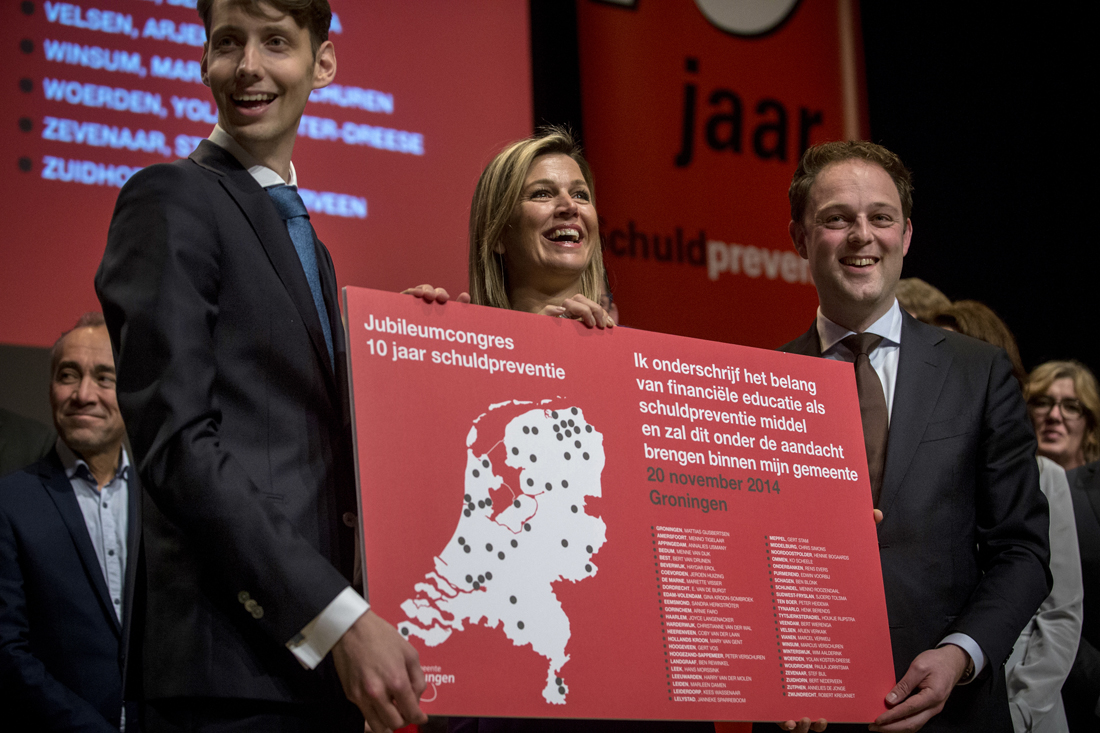 Hare Majesteit Koningin Máxima woonde 20 november het jubileumcongres ‘10 jaar schuldpreventie in Groningen’ bij. Wat destijds begon als experiment van de Groningse Kredietbank is uitgegroeid tot een brede aanpak waarin de gemeente samenwerkt met scholen, universiteiten, bedrijven, Centra voor Jeugd en Gezin, woningbouwverenigingen, vakbonden en zelfs jeugdgevangenissen. Doel: voorkomen dat mensen in de schulden komen en mensen leren op een verantwoorde manier om te gaan met hun financiën.