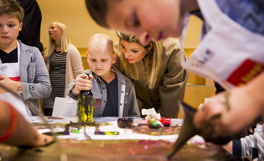 Jaarlijks krijgen zo’n dertig kinderen de diagnose neuroblastoom, een agressieve en zeldzame vorm van kinderkanker. De overlevingscijfers voor deze kinderen zijn slechter dan voor kinderen met andere typen kinderkanker; 70% van de patiënten overlijdt. Villa Joep, de stichting tegen neuroblastoom, heeft de afgelopen tien jaar het onderzoek naar de ziekte een sterke impuls gegeven. Hare Majesteit Koningin Máxima was 12 november aanwezig bij een relatiebijeenkomst van Villa Joep. Zij praatte met patiëntjes en hun broertjes en zusjes terwijl zij een kunstworkshop kregen in het Stedelijk Museum Amsterdam. Daarna nam de Koningin deel aan een bijeenkomst met ouders en wetenschappers, waar onder meer de meest recente ontwikkelingen in het onderzoek werden besproken. Moeders vertelden hoe hun leven was veranderd nadat hun kinderen de diagnose neuroblastoom kregen. “De vanzelfsprekendheid van het leven is weg”, zei de moeder van Loïs. De moeder van Lennard vertelde hoe haar zoon van de ene op de andere dag enorme buikpijn kreeg. Wat volgde was de diagnose en het heftige behandeltraject. “We zijn overgeschakeld op standje verdoofd en het enige dat we nu kunnen doen is overleven.”