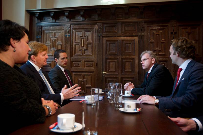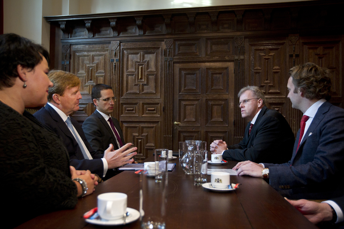 Zijne Majesteit Koning Willem-Alexander en staatssecretaris Dijksma van Economische Zaken spraken op 26 november in Oudewater met een van de getroffen pluimveehouders. Een aantal vertegenwoordigers van brancheorganisaties binnen de pluimveesector was bij het gesprek aanwezig, evenals burgemeester Verhoeve van Oudewater. De burgemeester: “De uitbraak heeft onze kleine gemeenschap geraakt. Inwoners zijn geschrokken.”