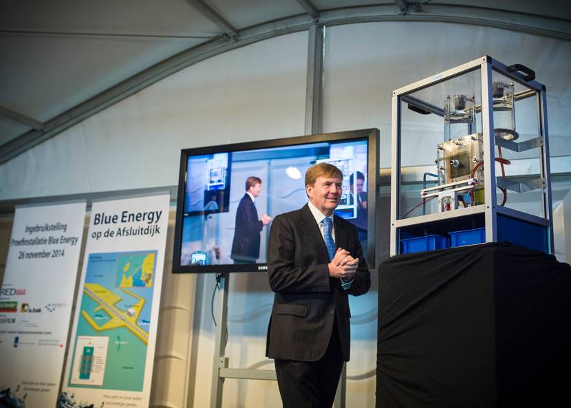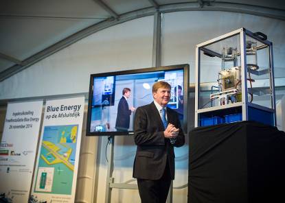 Energie winnen uit zoet en zout water; in theorie is het mogelijk. Maar of deze veelbelovende vorm van energiewinning ook echt perspectief biedt, zal in de praktijk moeten blijken. Nederland beschikt over de eerste installatie waarbij het concept in de praktijk wordt getest. Deze bevindt zich op de plek waar grote hoeveelheden zout en zoet water elkaar bijna raken: de Afsluitdijk. Zijne Majesteit Koning Willem-Alexander opende 26 november de Blue Energy proefinstallatie op het voormalige werkeiland Breezanddijk.