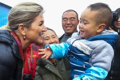 van de Universiteit van Beijing en ging zij op bezoek bij boeren en kleine ondernemers in de omgeving van de hoofdstad. Kweekster Zhou Guozhi uit het dorp Lou Manchu was een van de mensen met wie zij sprak. Zhou vertelde over haar tomatenkassen die eerder onvoldoende beschermd waren tegen de winterkou. Dankzij een kleine lening is ze in staat geweest haar kassen met folie te beschermen, waardoor haar bedrijf kon overleven.De Koningin sprak in Huangzhou ook met de topman van een van de grootste Chinese bedrijven: Jack Ma van internetonderneming Alibaba. Hij vertelde haar over de nieuwe manieren van financiering via internet die het bedrijf heeft ontwikkeld. Hierdoor komt toegang tot financiële diensten ook binnen bereik van mensen die niet in de grote stad wonen.